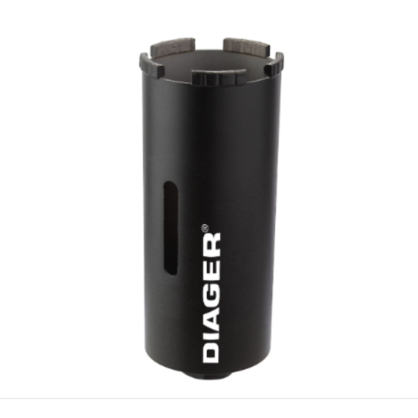 Trépans diamant longueur utile de 154 mm pour un perçage à sec. Les segments ondulés de la scie réduisent l’effort et augmentent la résistance.